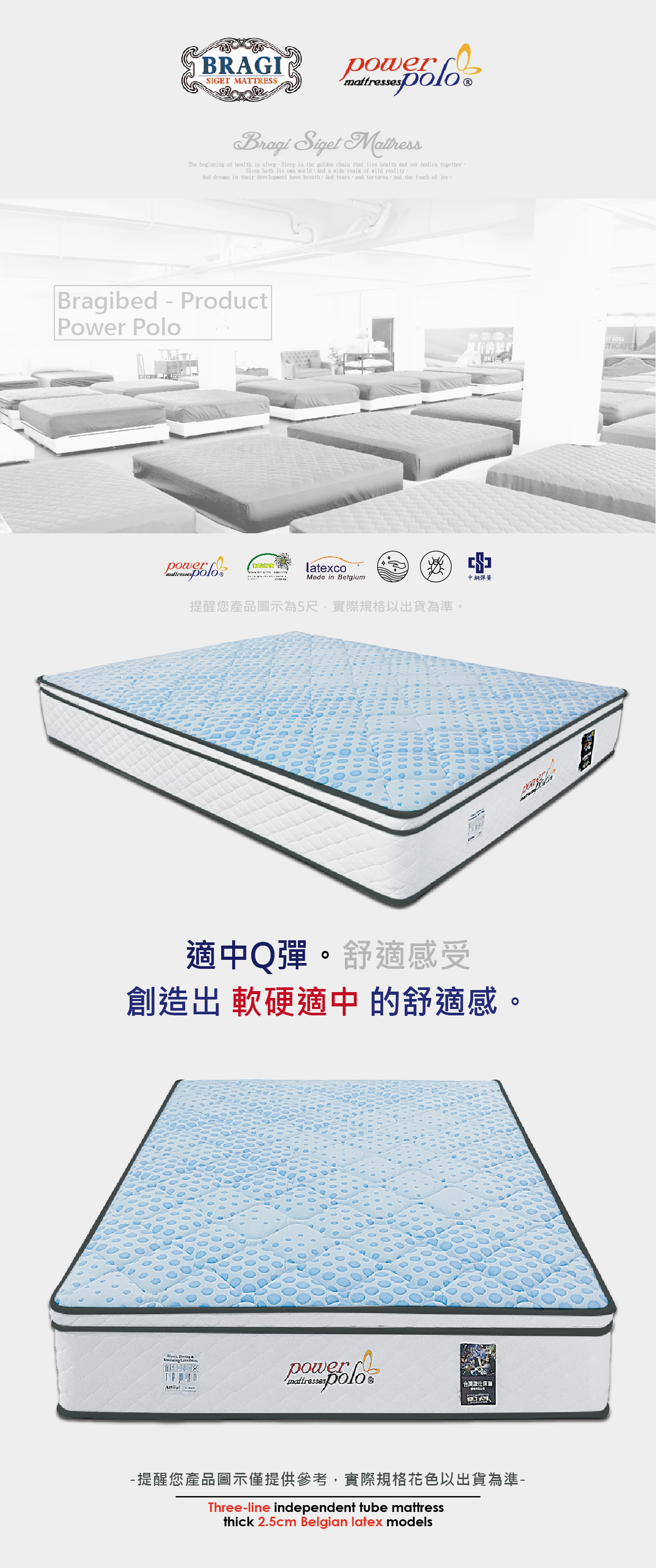 *搭配 2.5cm 比利時乳膠。