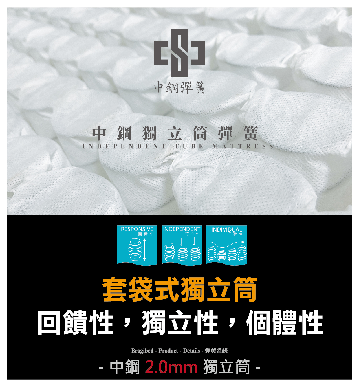 *2.0mm 中鋼獨立筒。