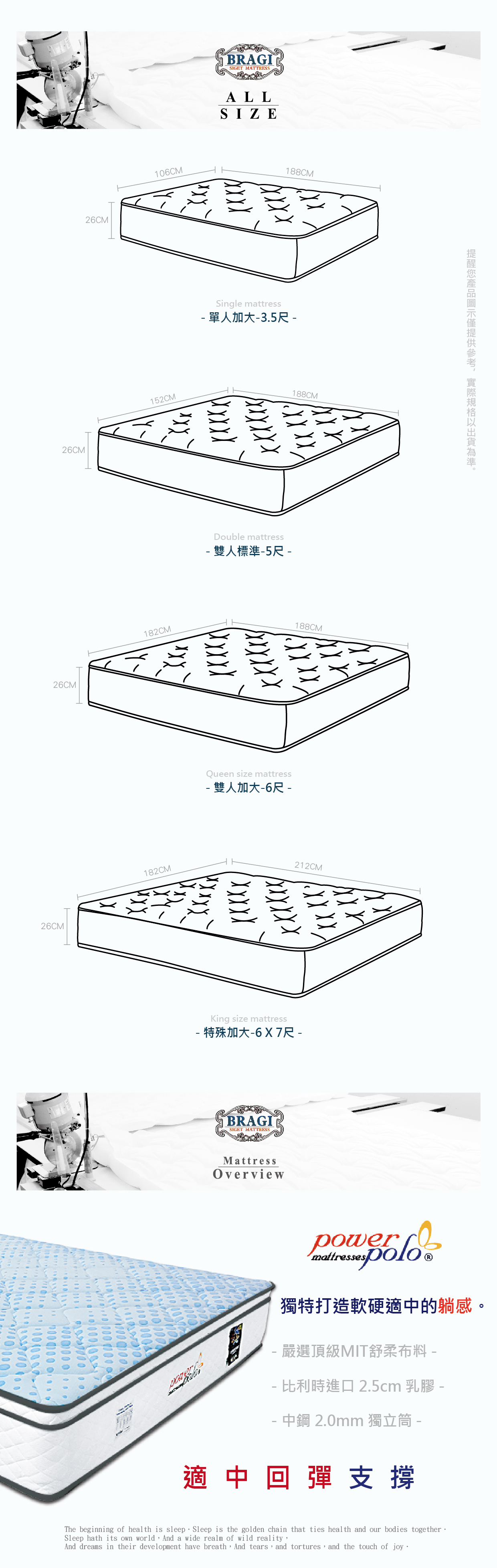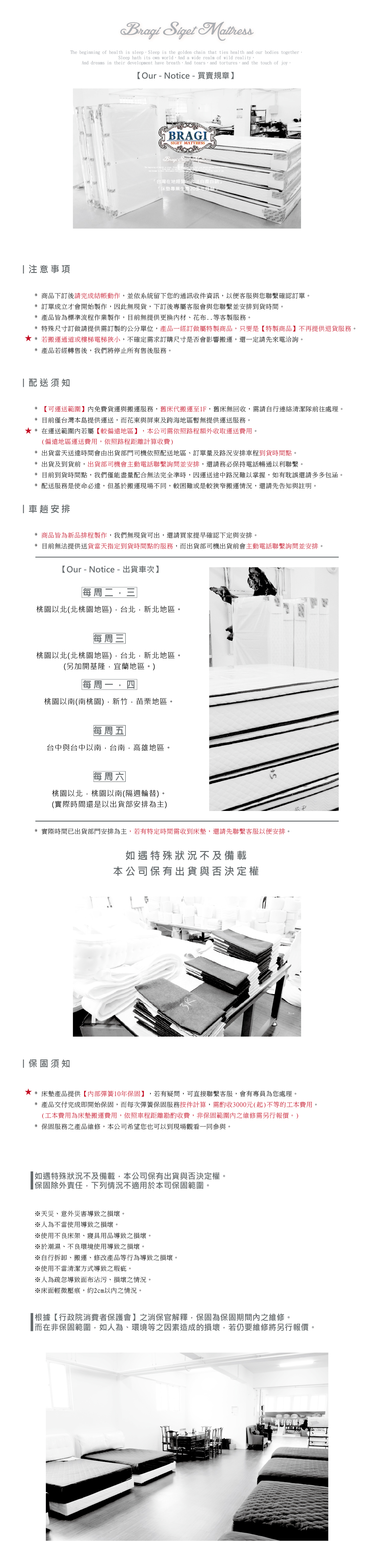 *床墊皆為訂製商品,不可退換貨。